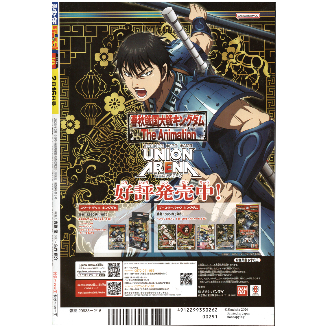 2026年2月16日号 週刊少年ジャンプ 10号になります。店頭陳列時や運搬時の傷・擦れ・ヨレがございますが、綺麗な状態です。