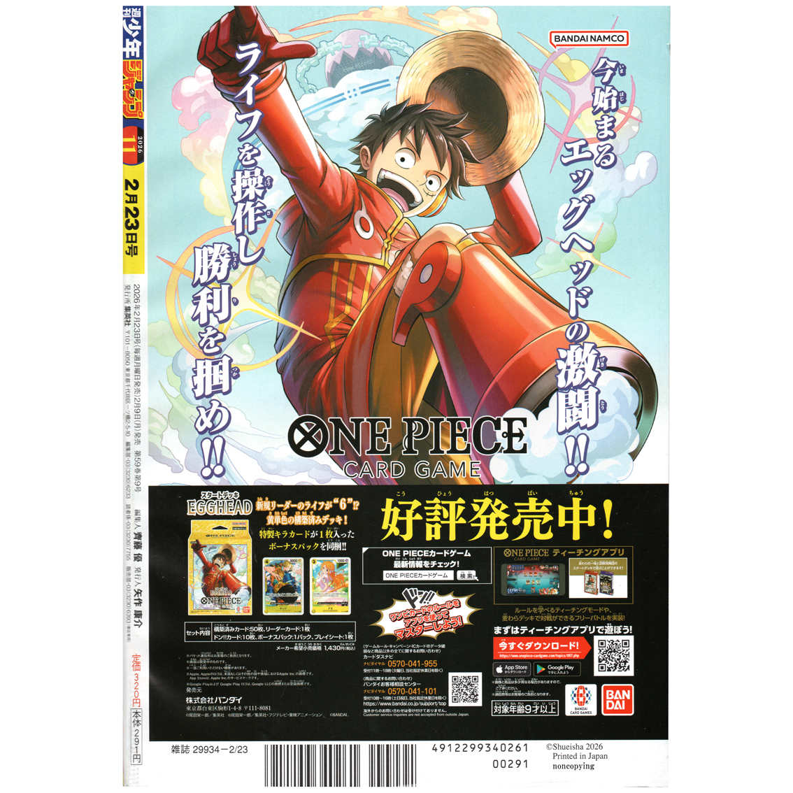2026年2月23日号 週刊少年ジャンプ 11号になります。店頭陳列時や運搬時の傷・擦れ・ヨレがございますが、綺麗な状態です。