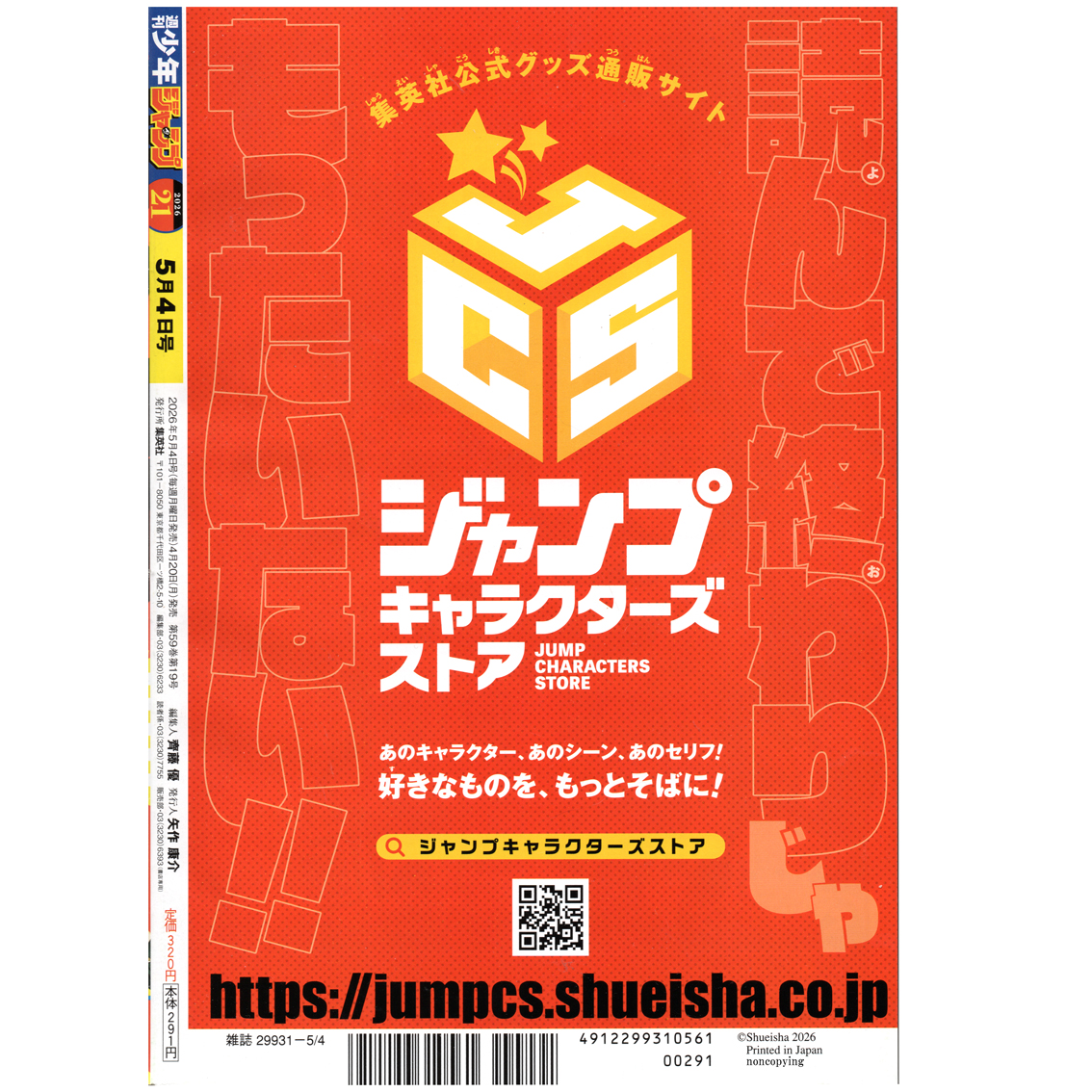 2026年5月4日号 週刊少年ジャンプ 21号になります。店頭陳列時や運搬時の傷・擦れ・ヨレがございますが、綺麗な状態です。