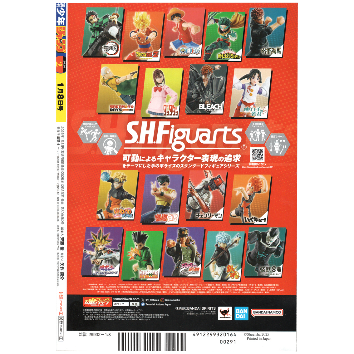 2026年1月8日号 週刊少年ジャンプ 2号になります。店頭陳列時や運搬時の傷・擦れ・ヨレがございますが、綺麗な状態です。