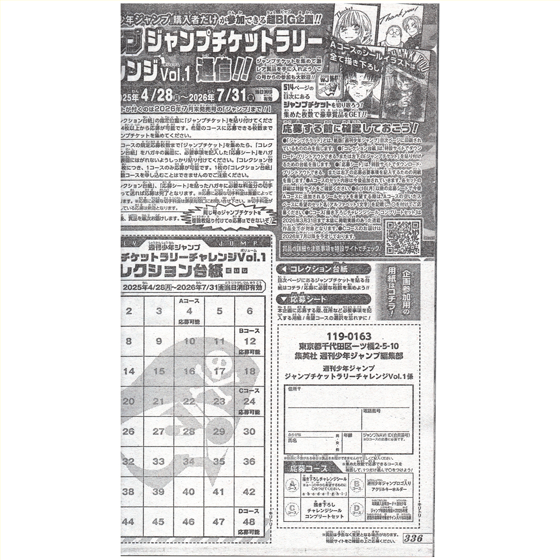 ジャンプチケットラリーチャレンジVol.1 応募シート&コレクション台紙