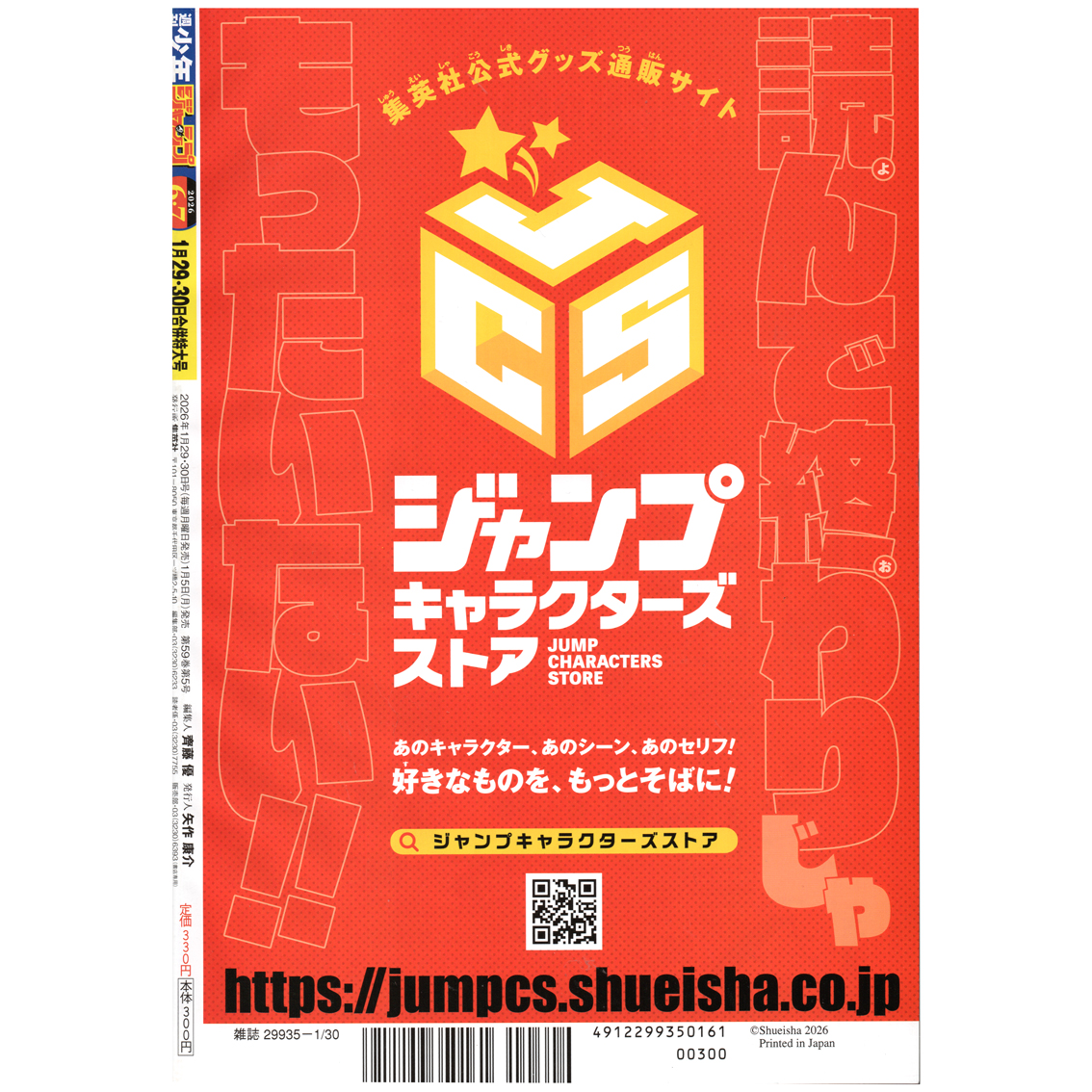 2026年1月29・30日合併特大号 週刊少年ジャンプ 新年6・7合併号になります。店頭陳列時や運搬時の傷・擦れ・ヨレがございますが、綺麗な状態です。
