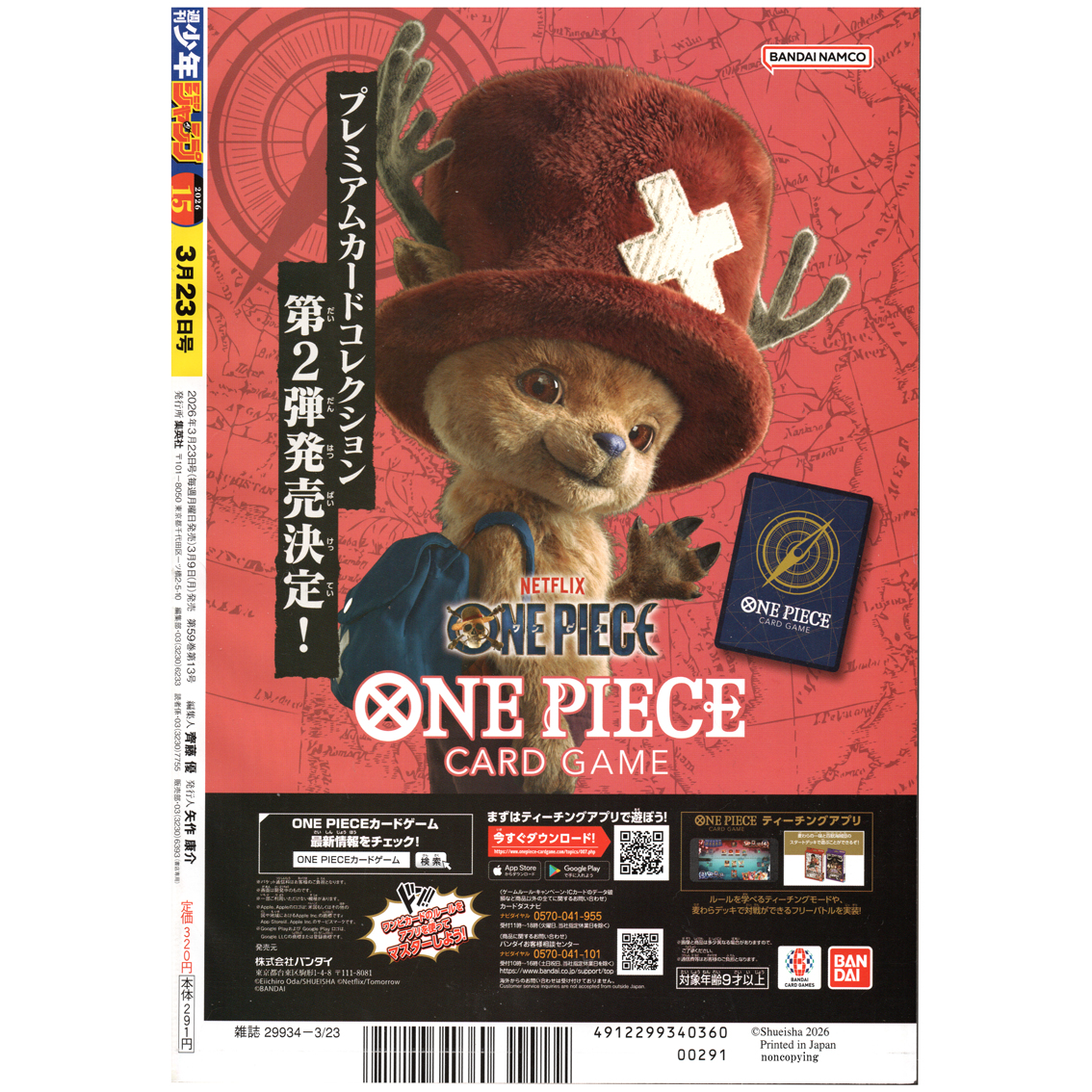 2026年3月23日号 週刊少年ジャンプ 15号になります。店頭陳列時や運搬時の傷・擦れ・ヨレがございますが、綺麗な状態です。
