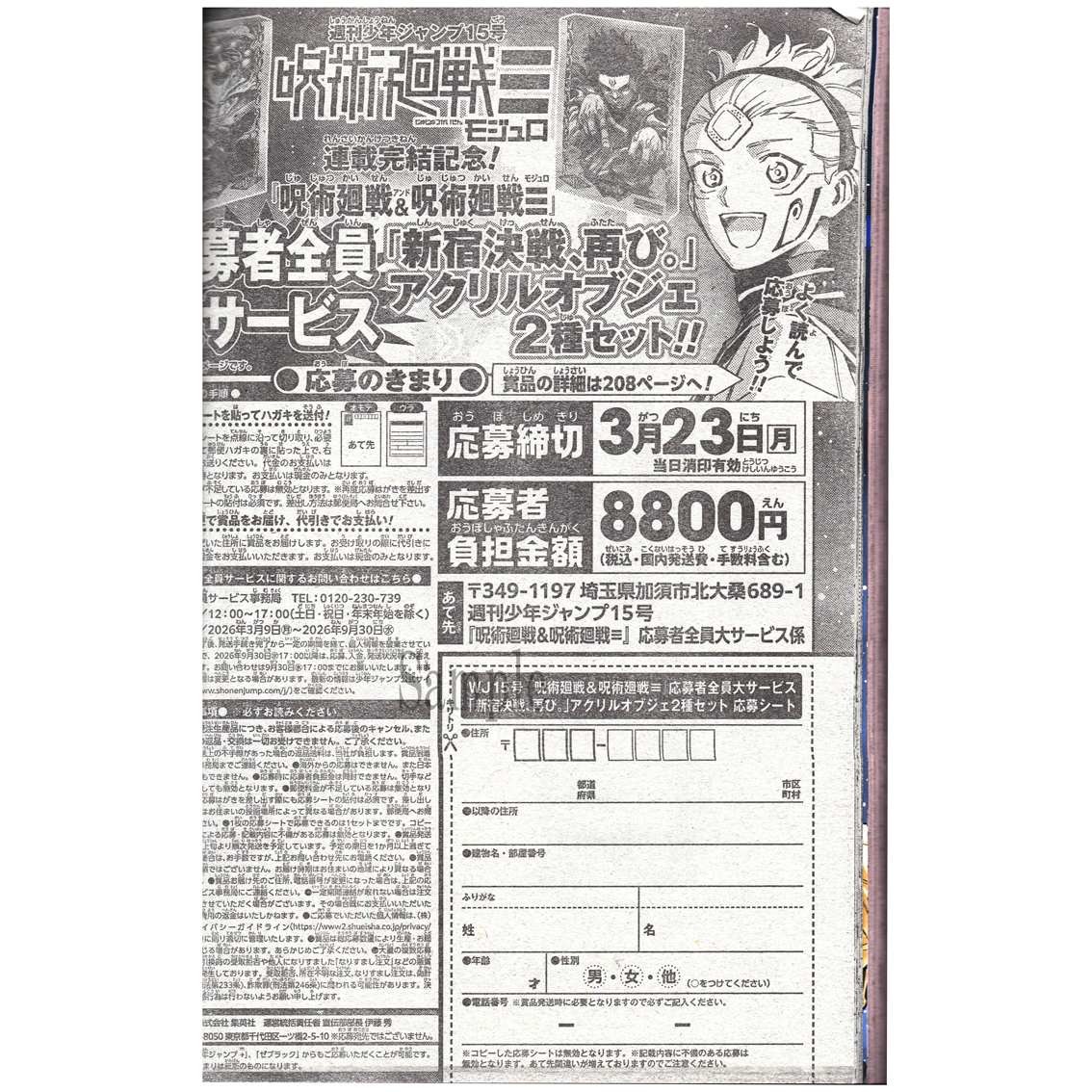 連載完結記念!「呪術廻戦&呪術廻戦Ξ」応募者全員サービス!!!「新宿決戦、再び。」 アクリルオブジェ2種セット!!応募券